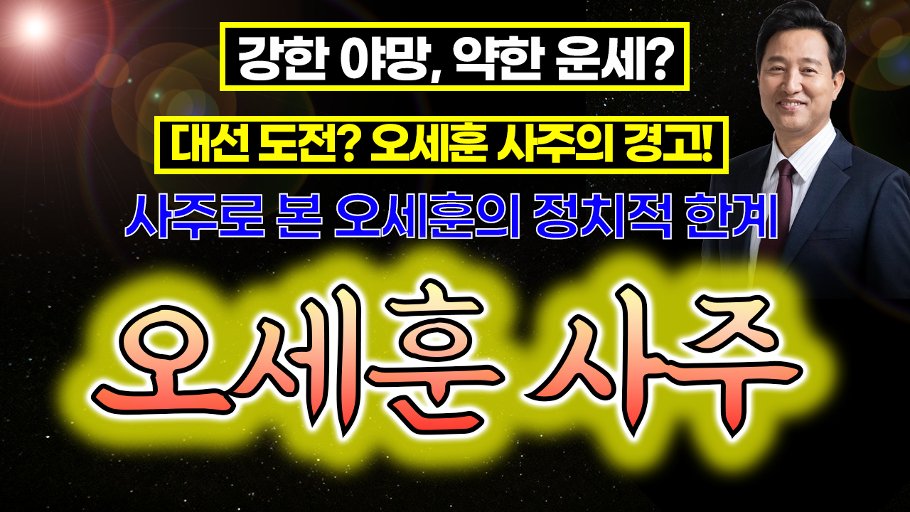 오세훈 시장의 사주는 여러 신호를 통해 대선 성공의 어려움을 암시하고 있습니다. 리더십과 추진력은 대단하지만, 대선이라는 무대는 이를 넘어서는 다양한 역량과 운세가 필요합니다.